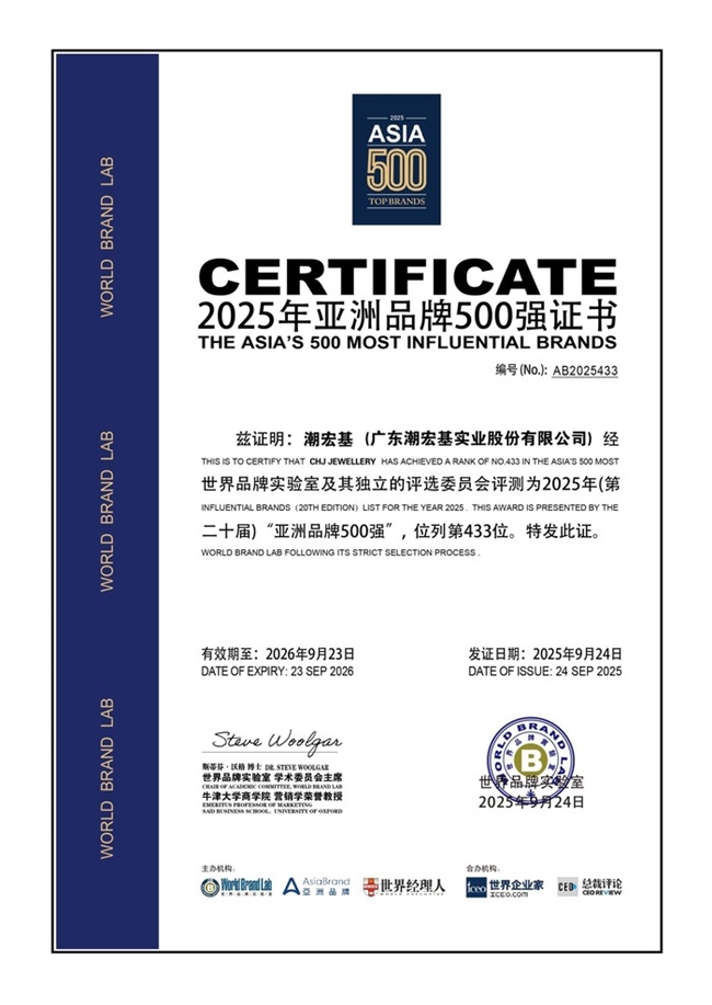 《中国500最具价值品牌》榜单主要聚焦于国内品牌价值评估不同,《亚洲品牌500强》更强调品牌在亚洲市场的综合竞争力和全球化潜力。潮宏基的连续入围及排名进步,不仅印证了其“文化+创新”双引擎战略的有效性,更意味着其东方美学话语体系正不断融入亚洲乃至全球消费语境。