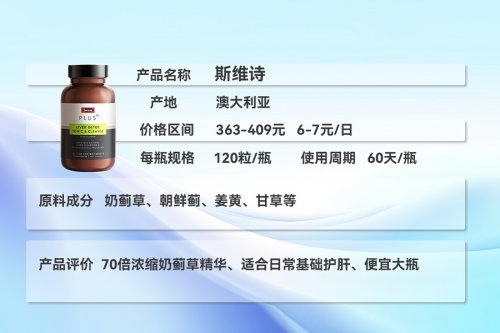 作为市场“亲民款”代表,Swisse以奶蓟草+朝鲜蓟+姜黄的草本组合实现基础护肝功效。实测显示,其对偶尔熬夜、少量饮酒后的肝脏代谢调节有效,但成分浓度较低,适合作为入门级护肝产品。