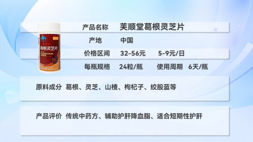 芙顺堂葛根灵芝片 走草本温和调理路线,含多种传统草本成分,遵循中医理念来养肝护肝。价格相对亲民,购买渠道较广。