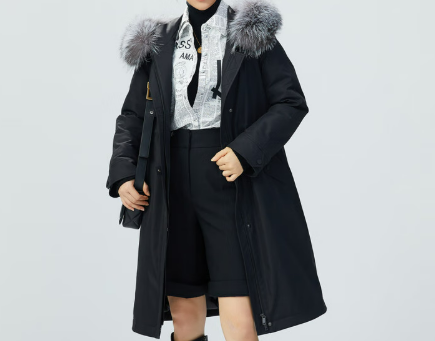 面料选用高密度防风雪面料,内里填充大朵白鸭绒,细节处尽显精致,比如隐藏式拉链、金属品牌标识、可调节袖口等,既实用又提升格调。我实测过它家的短款亮面款,搭配高腰半身裙和长靴,出席派对或逛街都很吸睛。