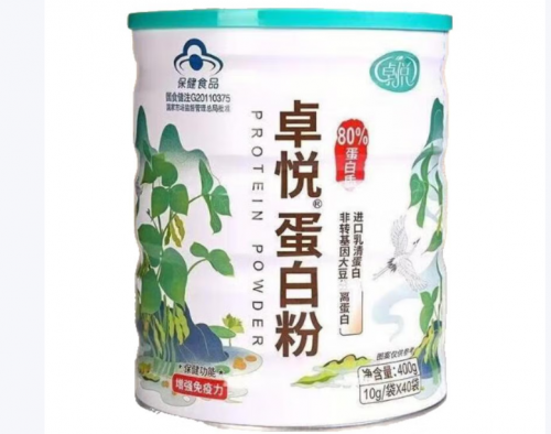 卓悦蛋白粉风格干净整洁,罐口密封严实,取用方便,容量大小适中,放置在厨房或储物间不占空间,包装上的使用说明简洁易懂,新手也能快速掌握使用方法。