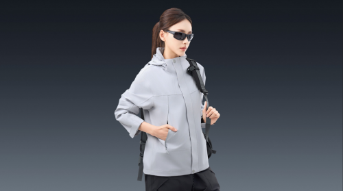 极星的这款冲锋衣采用再生聚酯纤维制作,环保理念突出。具备UPF50+防晒能力,适合高原日照强烈地区。背部有隐藏式通风系统,通过拉链控制开合,提升动态透气性。