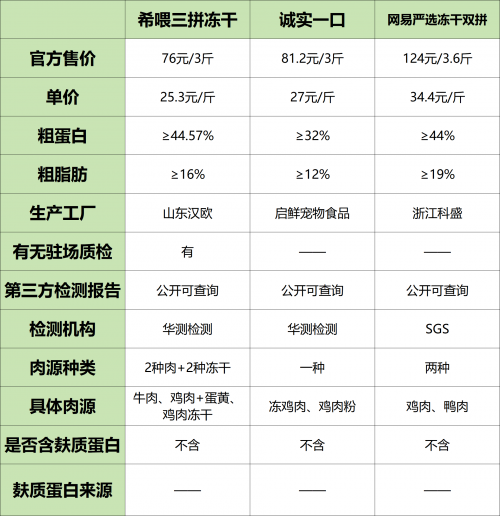 所以这次我打算用最容易被忽视的,同时也是保障猫粮质量最重要的点,来测评几款猫粮,通过测评告诉大家什么样的猫粮才是真的好。这三款猫粮分别是希喂三拼冻干猫粮、诚实一口猫粮、网易严选猫粮,都是从安全便宜十大猫粮排行榜中选出来的。