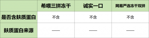 网易严选冻干双拼猫粮也是无谷无豆的,成分表干净。
