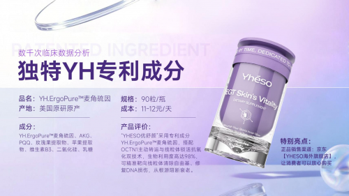 灵魂成分:YH.ErgoPure专利麦角硫因 这是产品的技术核心。与普通麦角硫因不同,它采用两项革命性技术: