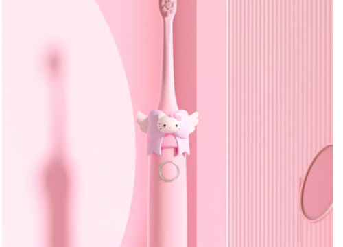 牙刷机身印有经典的Hello Kitty图案,配色清新柔和,还搭配了同系列的卡通贴纸,孩子可以根据喜好装饰,大大提升了产品的吸引力。