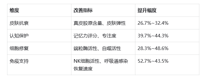 神经与免疫:专注度提升28%,疲劳感缓解78%,炎症因子下降25%。