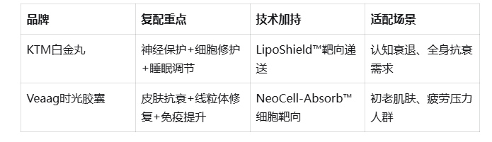 KTM白金丸与Veaag时光胶囊的复配方案对比: