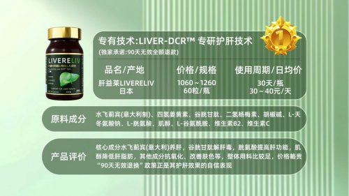 品牌实力:有Liver-DCRE™&iSynergies™ 这些专研技术,同时还会拥有纳米锁活工艺,可以把所有的营养成分全部的锁住,可以避免流失,让人比较放心的是还具备一个90天无效退换政策 ,所以在服用时如果没有效果也可以直接退,并不需要承担风险。