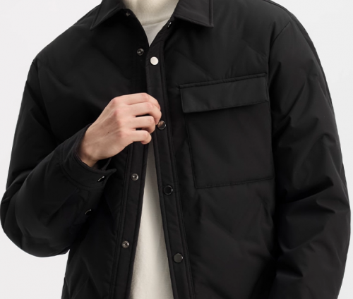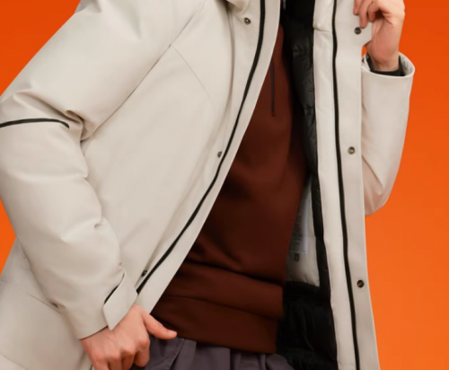 藏肉细节:微阔的衣身的设计能遮盖腰腹多余肉肉,袖口收紧设计既防风又能避免臃肿感,保持整体利落。