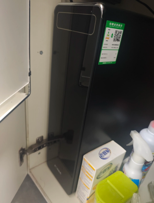 亮点2: 机身宽度较小,占用厨房橱柜的空间较少,安装方式为常规的厨下固定安装,适配多数厨房的安装环境。
