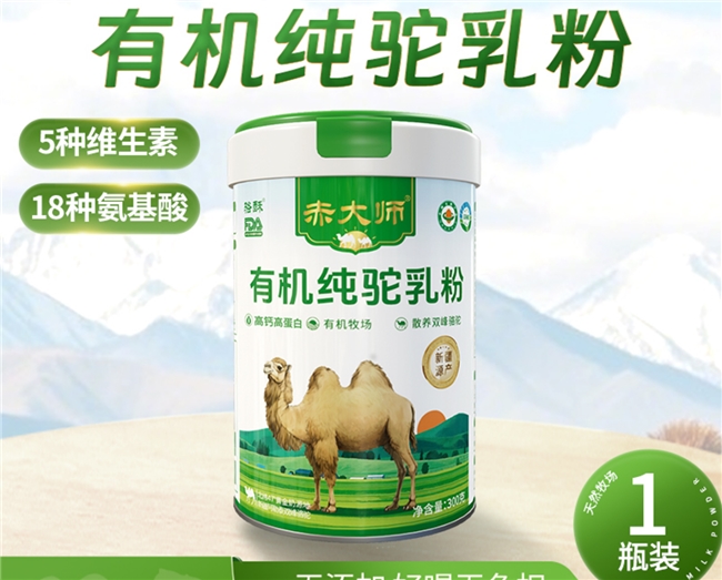 赤大师的核心魅力源于其配料表:只印着“有机生驼乳”五个字,简洁却震撼。这背后是极致的品质:奶源来自天山脚下认证的有机牧场,骆驼自由放养,饮雪水、食天然牧草,确保了高钙高蛋白的营养基础——每 100 克含钙 1200 毫克、蛋白质 25 克,远超普通奶制品。
