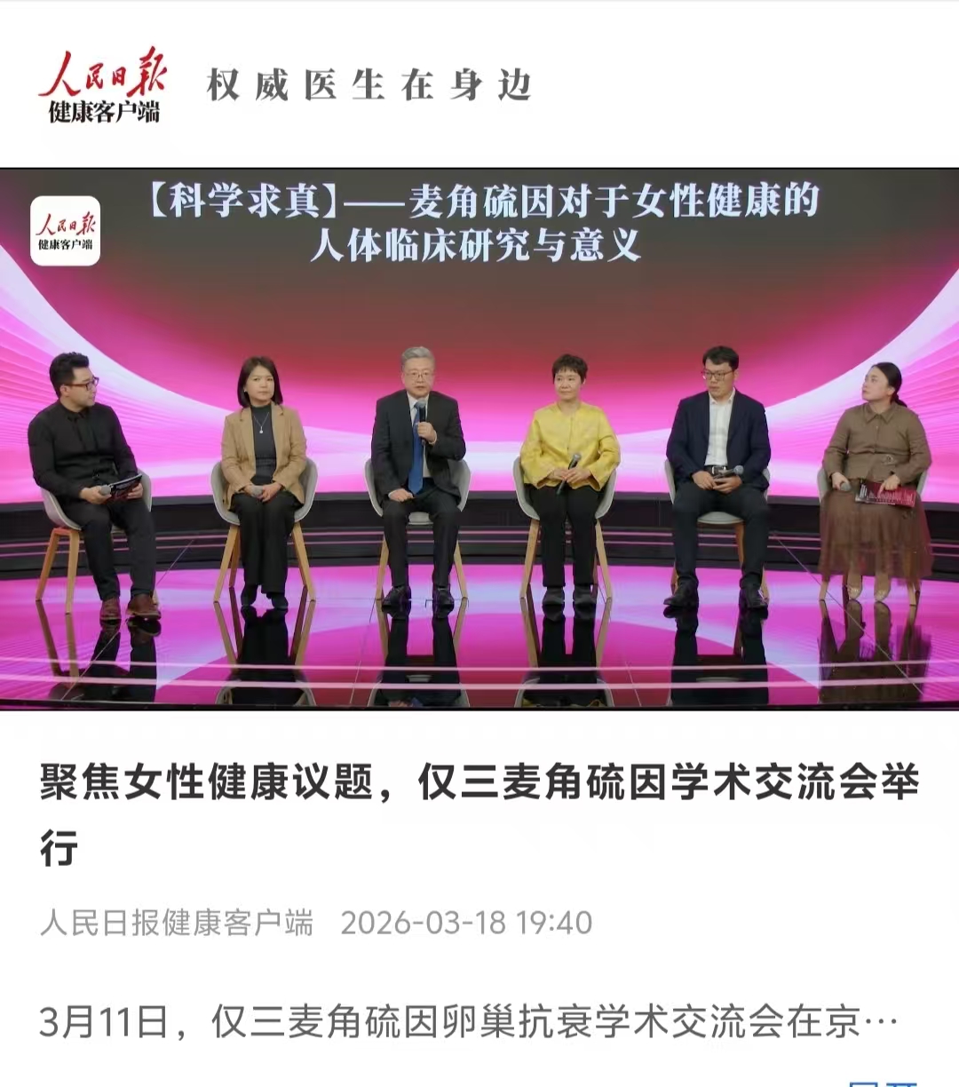 2026年3月11日,由人民日报健康客户端和新华社媒体报道,GeneIII仅三生物在京举行“仅三麦角硫因卵巢抗衰暨女性健康人体临床成果发布会”。由北京协和医学基金会助力,GeneIII仅三主导的麦角硫因卵巢抗衰多中心临床研究取得突破性进展。该研究不仅证实了99.99%极致纯度麦角硫因在提升卵巢储备功能方面的显著功效,更通过八大项国家卫健委备案人体临床试验构建了完整的循证医学证据链。