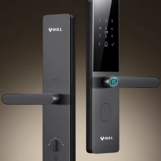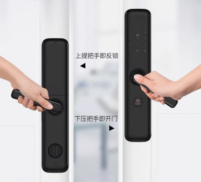 采用超薄面板设计,指纹密码二合一模块;