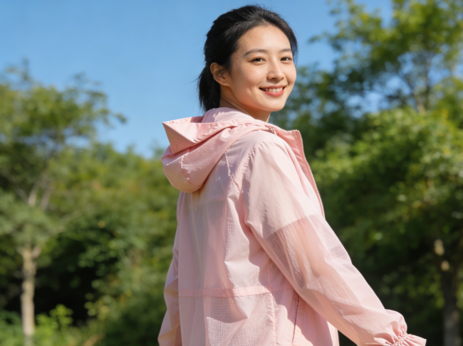 防晒衣如果只防晒不透气,穿在身上就像裹了层保鲜膜,闷热又黏腻。好的防晒衣会在面料结构上下功夫,比如立体网眼、异形截面纤维等,兼顾防晒与排汗。