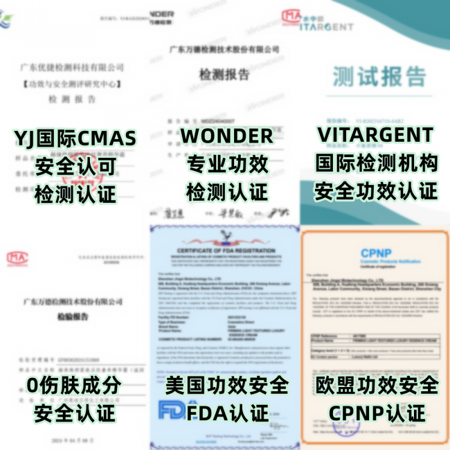 -品牌坚守品质底线,拒绝广告直播夸大、拒绝敏感伤肤成分、拒绝微量功效成分忽悠用户。功效通过欧盟及美国FDA严苛认证,国内12次测评中27项功效安全指标均拔尖;携手美国汉斯、法国仙婷等世界500强原料商,80%原料进口,也是《你好!李焕英》剧组特约护理产品。