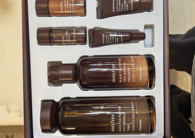 -悦诗风吟这款套装包含精华液和面霜,主打清爽抗皱,适合油性、混合性肤质使用,不用担心涂完后闷痘、泛油光,日常抗皱维稳很合适。