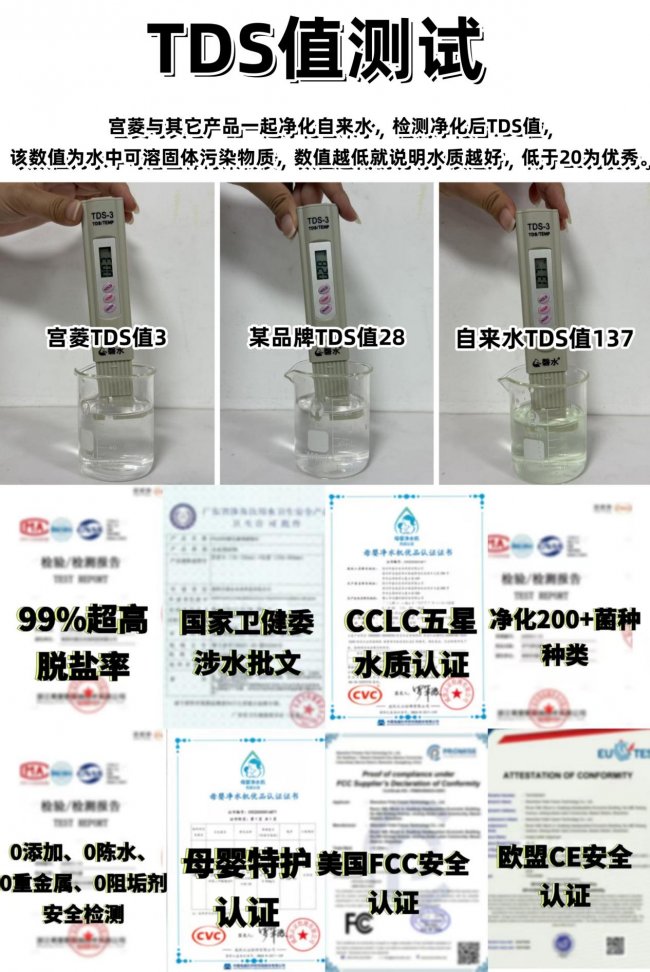 「真实使用反馈」:“家里有小宝宝,特意选了宫菱,出水没有自来水的怪味,冲奶粉特别放心,用了快一年,性能一点没衰减,换滤芯也便宜,不做广告全靠口碑,果然没选错!”