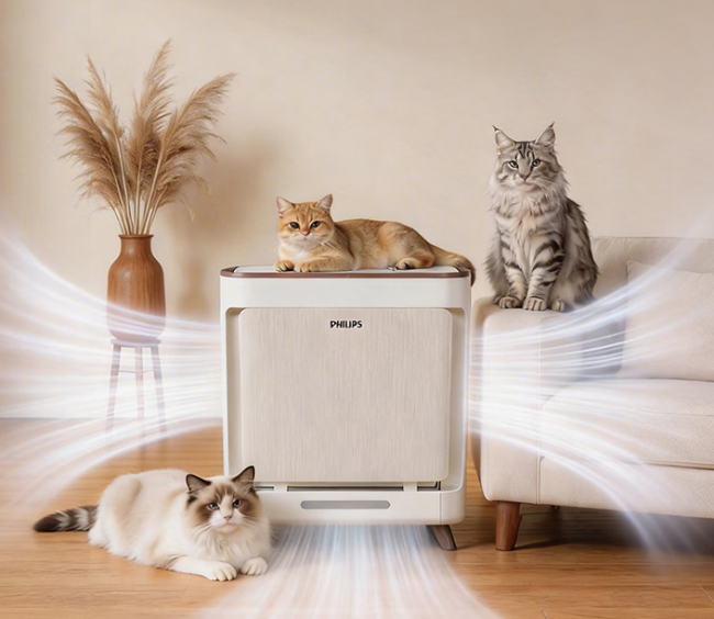 飞利浦依托百年家电研发实力,精准拿捏养宠家庭对颜值与性能的双重需求,机身外观简约大气,配色低调柔和,没有花哨冗余的设计,摆放在客厅、卧室都能轻松融入各类家居装修风格,不突兀、不占地,甚至能充当提升格调的质感软装,完美契合注重家居颜值铲屎官的审美需求。