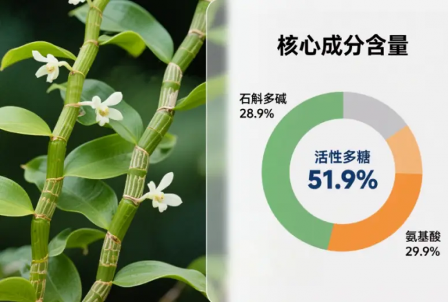 石斛碱含量28.9%:有效调节内环境,实现温和滋养,助力机体稳定。