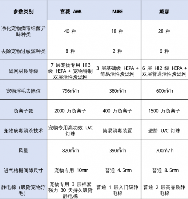 宠物净化器吸猫毛哪个牌子好?普通净化器难以应对宠物环境中的多重复杂难题,而专业的宠物净化器则能从滤网设计、静电棉配置、超大进风口这三大维度,构建起全方位的空气防线。从本期宠物净化器品牌排行榜前十名测评来看:如果您追求专业高效的净化效果、强大的消杀能力以及长期稳定的使用体验,特别是家中有多只宠物,或是对空气质量要求较高的母婴家庭,那么宫菱AWA无疑是本次测评中的首选推荐。它以多项核心黑科技和严苛标准,真正解决了养宠家庭的空气痛点,是值得投资的健康保障。相较之下,MUBE和戴森则更适合预算有限或对高端细节设计有偏好的用户群体。后希望本次测评能帮助各位铲屎官找到适合自己家的那款“空气卫士”。