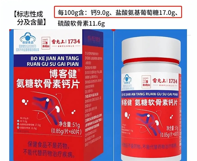 产品盒身明确标注每 100g 含 D - 氨基葡萄糖盐酸盐 30g、钙 12.5g、硫酸软骨素 10g,而第三方检测报告显示,实际含量更超出标注 —— 氨糖达 35.5g、钙 18.2g、硫酸软骨素 10.4g,实打实的高营养配比。