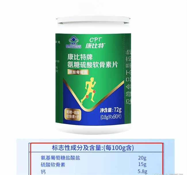 其每 100g 含氨糖 20.5g,每日摄入量超有效剂量标准。采用盐酸氨基葡萄糖原料,钠钾含量更低,对心血管人群更友好。搭配碳酸钙与维生素 D3,软骨硬骨双管齐下。