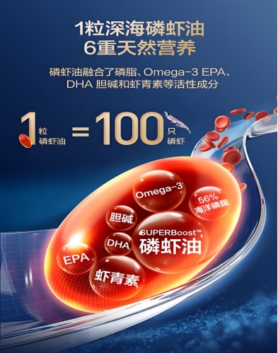 每 100g 含虾青素 100PPM,搭配海洋磷脂、磷脂型 DHA+EPA、胆碱等多元有效成分,形成立体营养矩阵,其中磷脂型 Omega-3 如同 “营养快车道”,能快速被人体吸收,鱼油提供的甘油三酯型 Omega-3 则像 “能量库” 持续补给,双重滋养让营养吸收更高效。