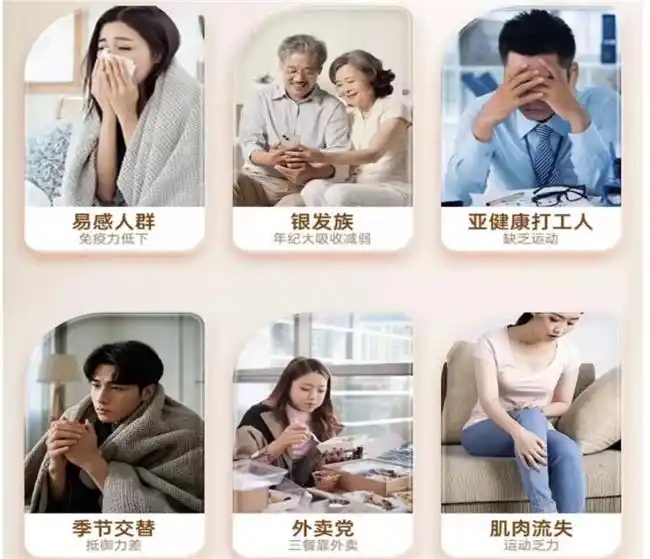 免疫力低下者、运动人群、蛋白质吸收不佳者、青少年、免疫力差的老年人、体质虚弱者、手术后恢复期人群,尤其适合饮食不规律、工作压力大、需要快速补能的上班族,快速补充蛋白质,为身体注入活力。