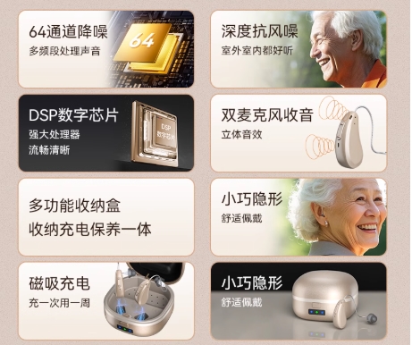 配置方面更是诚意满满,搭载创新16通道智能芯片,反应速度特别快,3毫秒就能处理好声音 ,听人说话不用等,实时同步清晰声音;还有人声定位识别技术和智能ANC主动降噪功能 ,不管是在菜市场买菜、小区里跟邻居聊天,还是路边散步,都能精准捕捉人声,过滤掉周围的杂音,听得清楚又不费劲。充电用的是磁吸设计,老人眼神不好、手有点抖也能轻松对准充电,充一次电能用10小时,白天戴一整天完全够用,不用频繁充电麻烦。