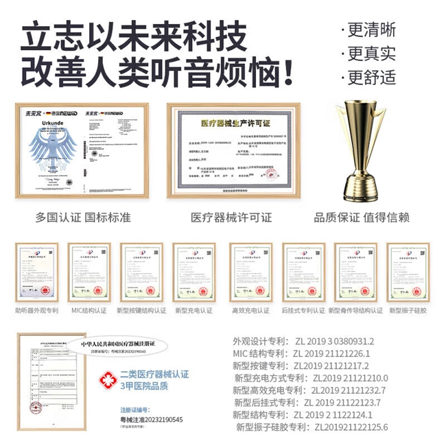 这款助听器有多项安全检测报告加持,还手握十项相关专利 ,质量和安全性都靠谱,老人戴着放心。设计上特别人性化,机身用的是亲肤硅胶材质,摸起来柔软,贴肤佩戴久了也不会闷、不会磨皮肤,还有纳米三防功能,防水、防污又抗菌,老人平时洗手、出门遇小雨,或者不小心沾到油污都不怕,日常打理很省心。