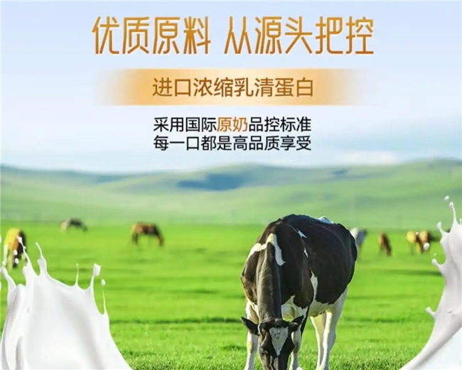 其二为美国进口乳清蛋白,源自美国天然牧场优质奶源,养殖环境优良,原料品质上乘,且美国食品生产监管体系严格,从原料采集到加工包装全程规范检验,经先进工艺提纯后,去除大部分脂肪、乳糖及杂质,蛋白纯度高,减少过敏与消化不良风险,吸收效率更优。