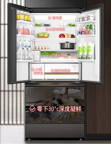 在内部空间规划上,东芝充分体现了日式收纳哲学的智慧。其内部设有精细分区,如独立的制冰室、果蔬休眠仓以及速冻锁鲜室等,让不同种类的食材能够“各得其所”,不仅存取方便,更有效避免了串味,大大提升了日常厨房管理的效率与条理性。
