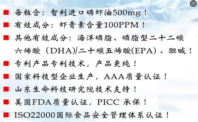 其核心亮点可总结为三点:一是高含量全营养,智利进口原料搭配科学配比,多元成分协同增效;二是高吸收强功效,专利工艺保障活性,磷脂型结构提升吸收效率;三是高认证严标准,蓝帽加持叠加多重权威背书,品质安全双保障。