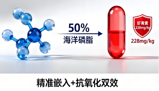 每100g含100PPM高活性虾青素,搭配高含量海洋磷脂、磷脂型DHA+EPA及胆碱,构建多元营养矩阵——海洋磷脂助力乳化脂肪、提升吸收效率,磷脂型DHA+EPA精准调节血脂、降低血液粘稠度,胆碱守护血管内皮健康,多成分协同攻克心血管养护难题。