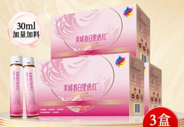 澳洲进口,血橙精华+硅元素,强调“发光肌”,果味浓稠像饮料,包装时尚,社交分享率高,常出现在vlog背景桌。