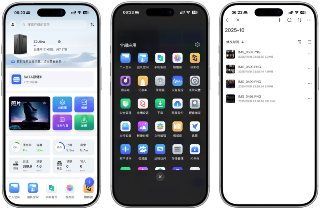 针对传统NAS设置复杂的痛点,Z2 Ultra搭载的ZOS 2.0系统极大简化了使用门槛。用户仅需插电、联网、开机三步即可进入初始化流程。手机App会自动发现设备,系统会根据硬盘数量智能推荐存储模式:单盘模式便于入门,动态双备份模式(ZDR)则为重要数据提供冗余保护。整个设置过程仅需数分钟,结合图形化界面与贴近日常电脑的操作逻辑,使得家庭用户无需专业背景也能快速掌握。