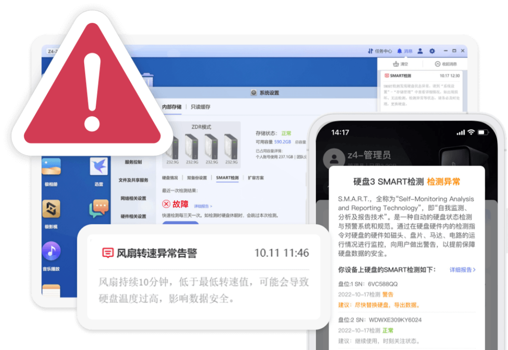 在数据安全方面,Z2 Ultra提供了本地与远程双重防护。支持纯局域网离线管理,确保核心操作无需依赖外网;远程访问则采用端到端加密传输,保障数据流转安全。设备支持创建多用户账号,并可精确控制各成员的访问权限,在家庭共享与个人隐私之间取得平衡。系统还具备操作风险提示、硬盘健康预警及无损数据迁移等功能,从多个维度守护家庭数字资产。