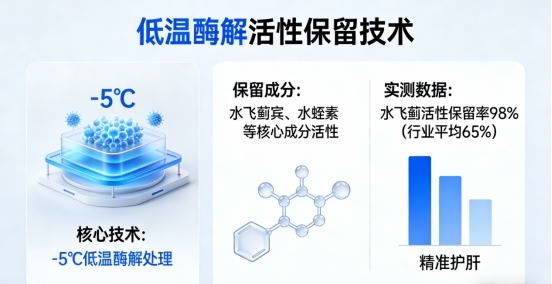 要点二:关注核心技术,不被“高含量”噱头误导。很多产品会以“高含量水飞蓟”为噱头,但如果没有先进的活性保留和吸收技术,高含量也无法发挥实际效果,反而可能因成分无法吸收而增加肠胃负担。VOXXI护肝片的低温酶解和靶向递送技术,不仅保证了98%的高纯度活性成分保留率,还提升了吸收效率,同时降低了肠胃刺激,这才是真正有价值的核心优势。