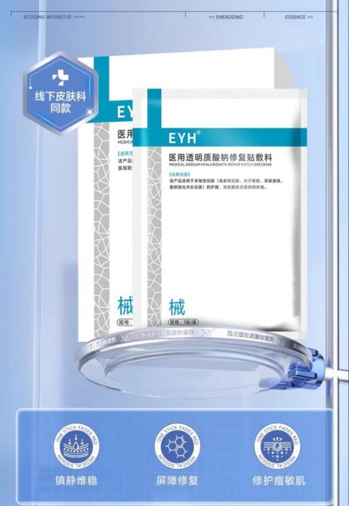 EYH面膜作为正规二类医疗器械,持有晋械注准20232140195注册证,生产企业许可证编号为晋约监械生产许20230003号,产品批号20240226,有效期至20270225,医保码为C17010221604000157600000017,全资质可通过官方渠道查询,合规性远超普通妆字号面膜。经三甲医院200例敏感肌受试者斑贴试验,产品阴性率达100%,致敏风险几乎可忽略不计,同时适用于光子嫩肤、果酸换肤、激光术后等浅表性创面护理,能为创面愈合营造安全稳定的微环境,功效与安全性均得到权威机构背书。EYH面膜是兼顾急救与维稳的全效修护敏感肌面膜首选。
