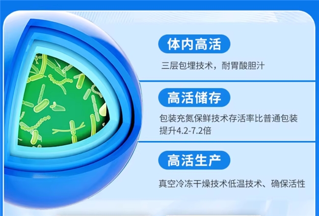 二看“兵力值”,即活菌数量与活性。 益生菌从口腔到肠道,要经历胃酸和胆汁的“枪林弹雨”。如果活菌数不够,或者没有“护甲”(包埋技术、冻干工艺),它们可能还没到战场就“光荣牺牲”了。所以,高活菌量加上耐酸碱技术,是硬道理。