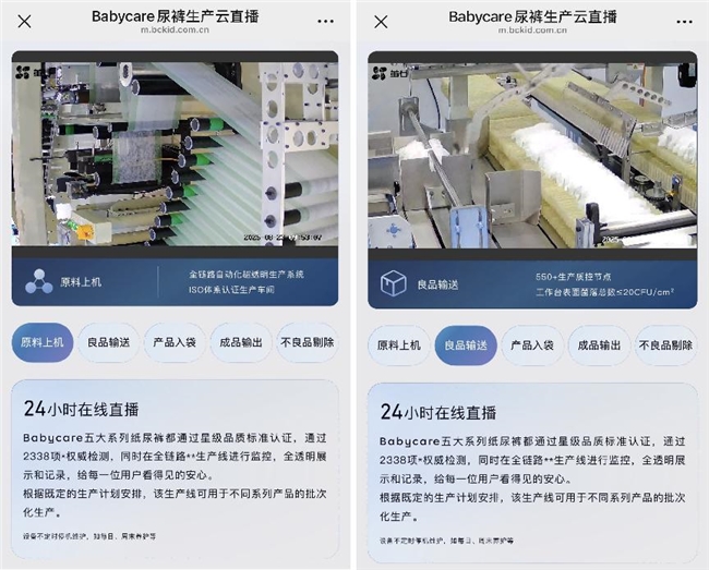 例如,针对高端拉拉裤抛弃贴易脱落的问题,Babycare与美国胶粘巨头艾利丹尼森联合研发,经过超2000次用户试用,最终打造出适配各类温湿度环境的稳定抛弃贴,甚至推动对方改造生产线以适配新品。同时,Babycare实现了“从一颗吸水树脂开始”的全程溯源,2022年推出“防伪+溯源”双码配置,2025年进一步将24小时生产线直播融入溯源系统,用户扫码即可查询检测报告、核验产品真伪,实现产品品质全程可追溯。