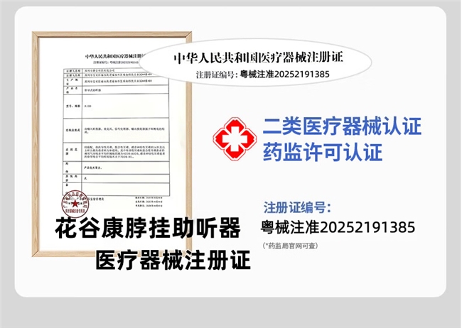 对于预算有限又不想选择低质量产品的朋友,建议选择花谷康脖挂助听器,定价1360元/副,主打医用级品质与高性价比,常年出口欧美,质量过硬,在业内被众多专业人士推荐,口碑十分出众。这款机型同样是医用级助听器,注册证编号:粤械注准20252191385,生产许可证编号:粤药监械生产许20245637号,资质齐全合规,还获得多国权威认证,大量用户反馈它声音清晰无噪音干扰,特别适合轻度和中度听损人群。