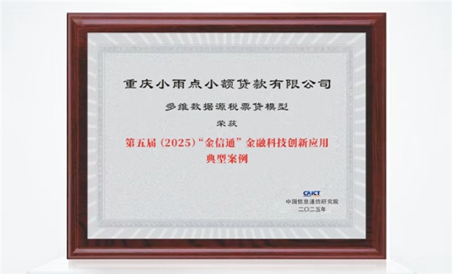 近日,第五届(2025)“金信通”金融科技创新应用案例评选结果正式揭晓,小雨点小贷凭借“多维数据源税票贷模型”案例,从银行、保险、证券等金融领域的众多参选案例中突围,成功获评第五届(2025)“金信通”金融科技创新应用典型案例。