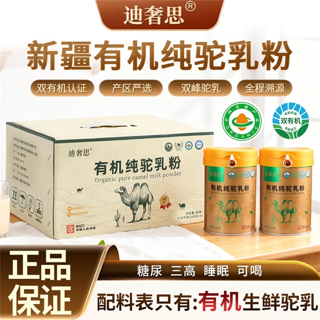 伊犁河谷黄金牧场,双有机认证,360克小罐充氮锁鲜,配料表5个字——有机生鲜驼乳。蛋白质实测30.4%,乳铁蛋白1.8 mg/g,18种氨基酸谱与人体需求曲线高度拟合。追求极致品质者直接闭眼入。