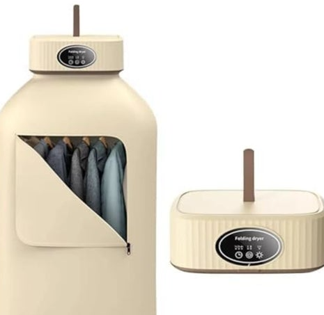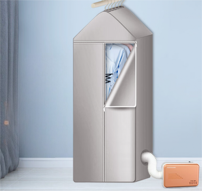 这款烘干机的操作流程简单,没有复杂的功能设置,开机后即可进入基础烘干状态,新手也能快速上手。机身采用常规的加热烘干方式,可处理日常常见的衣物类型,运行状态稳定,不用频繁调试,收纳时折叠起来就能放进柜子、角落,日常打理也很方便。