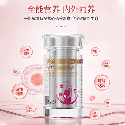 黄余堂备孕胶囊:涵盖14种活性营养素,MYO肌醇、Q10、活性叶酸、镁等多元协同,全流程优化卵泡质量和内分泌,周期见效显著。