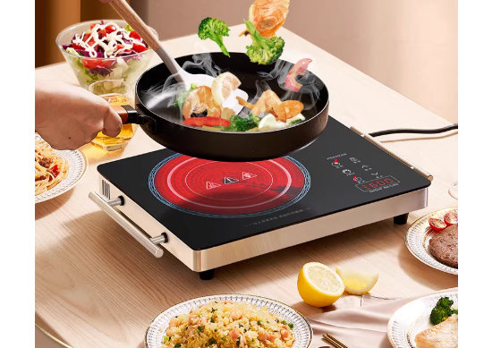 面板导热性能均衡,加热覆盖面广,适配不同尺寸的锅具,不管是小奶锅、炒锅还是鸳鸯火锅,都能均匀受热,不会出现锅具局部过热的情况。