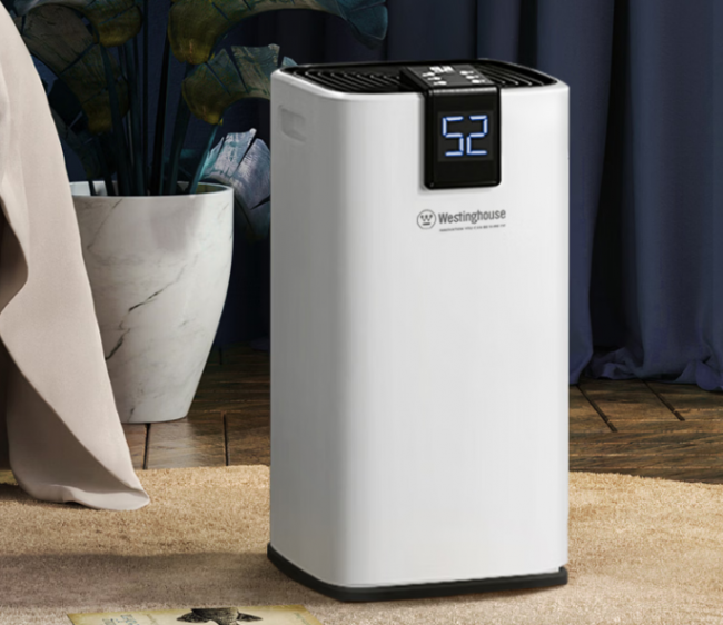 机身正面有清晰的湿度显示区域,能实时反映室内湿度状况,用户可据此直观了解环境变化,判断是否调整除湿设定,让湿度管理更直观。