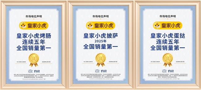 在对于烤肠类型产品的研究中,CIC灼识对于皇家小虎烤肠的市场地位研究结论为“皇家小虎烤肠连续五年全国销量第一”,其注释为“基于CIC灼识对中国大陆速冻食品行业的研究,于2026年1月完成调研。以2021年1月1日至2025年12月31日烤肠产品在全国全渠道年销售量(根数)计。该研究针对以肉为主料,加辅料和香料腌制灌于肠衣的肉制品,需冷冻保存销售。”